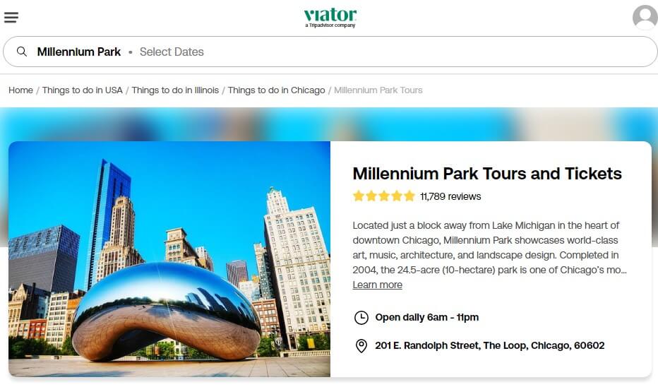 밀레니엄 파크 (Millennium Park)와 콩 (The Bean)과 같은 미시간 호수 유역에있는 도시의 많은 유명한 랜드 마크가있는 곳입니다.